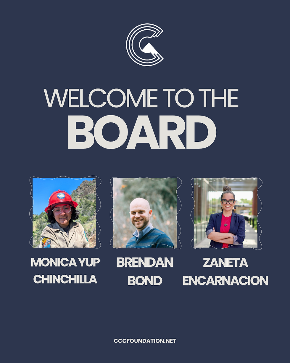 We are honored to welcome Brendan, Zaneta, and Mónica to the CCC Foundation board. Together, they strengthen our ability to support, celebrate, and expand the work of the California Conservation Corps.
